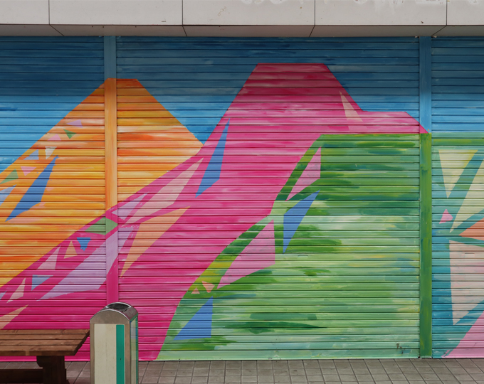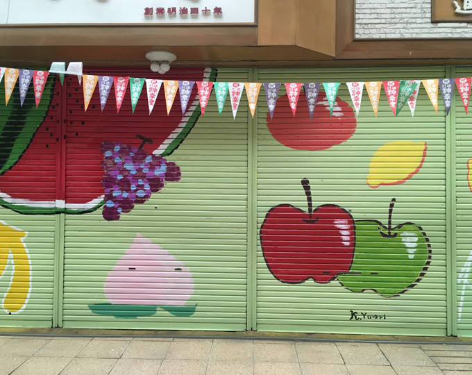 The Ita Shopping Mall with a retro atmosphere of the latter part of the 20th century is now changing into a colorful shopping mall with shop shutter arts. In addition to unique paintings by local residents, you can see the shop shutter arts by the artist Takaya Sakamoto.
