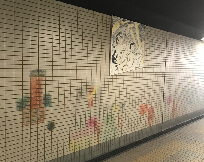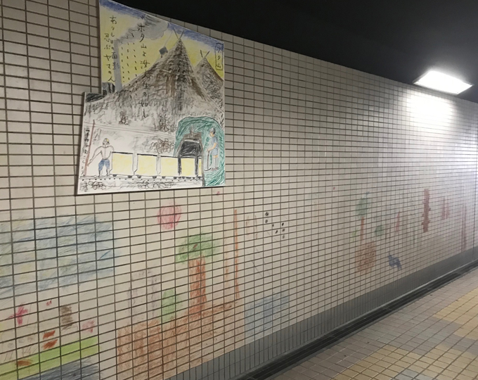 Sakubei Yamamoto's paintings depicting the coal mines are on display in the the passageway connecting Tagawa-Ida station and the Museum of Coal and History. Paintings from illustrator Seitaro Kuroda and drawings by local elementary school students are also on display.