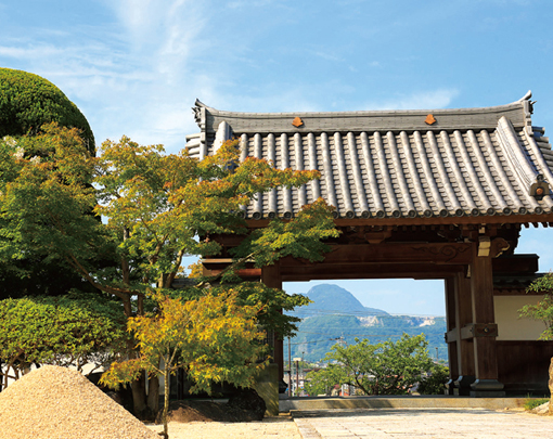 There are many unique stone images of Jizo (a guardian deity of children) in Tagawa. This stone image of Ganbare Jizo cheers you on! The word "Ganbare" in Japanese means"good luck." This Jizo with a kind face looks as if it is encouraging people who are in trouble. The highlights are Nakazugaike Pond, where a mysterious legend has been handed down, and the Memorial Tower of Kogo no Tsubone who was a favorite mistress of Emperor Takaku. The image of Mt. Kawara through the quietly standing gate of Jodoji Temple is also very mystic.