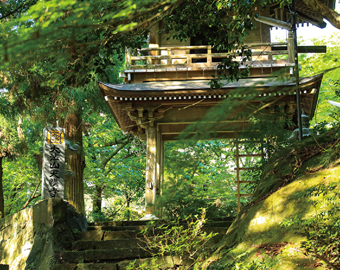 The surroundings include a primeval forest and fantastically‐shaped rocks. The stunning temple gate and the main hall are also worth seeing. This temple is also well known as Ajisai Temple (lit. Hydrangea Temple).